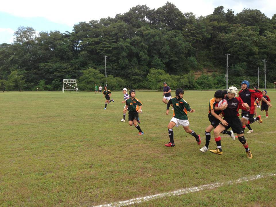 約2時間のラグビークリニックでは、腕を伸ばしてボールをキャッチする「アーリーキャッチ」の徹底、フォローをしているときも常に前を向くこと、タックルされた後のボールプレゼンテーション(ダウンボール)の指導、そして2人目のクリーンアウト(オーバー)の仕方などについての的確な指導がおこなわれ、子どもたちは楽しみながら技術と考え方を身に着けることができたようです。