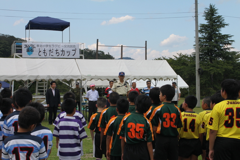 8月24日、25日に陸上自衛隊船岡駐屯地様にて、東北小学生ラグビー交流試合第2回「ともだちカップ」を開催いたしました。 「ともだちカップ」はNPO法人スクラム釜石の主催で、東北6県のラグビースクールの高学年(小学5年、6年)のこどもたちを招待し、交流試合・キャンプ体験・ワークショップなどを通じ、参加した子供たち相互の交流を図ってもらうとともに、東日本大震災において災害復興支援活動を行っていただいた陸上自衛隊の方々との交流を継続することを目的として実施いたしました。