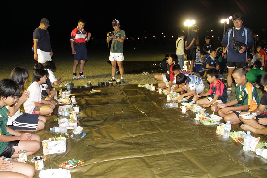 クリニック終了後は、テントごとに分けた各チーム混成のメンバーで協力しながらの食事、入浴、キャンプファイヤーで1日目は終了しました。